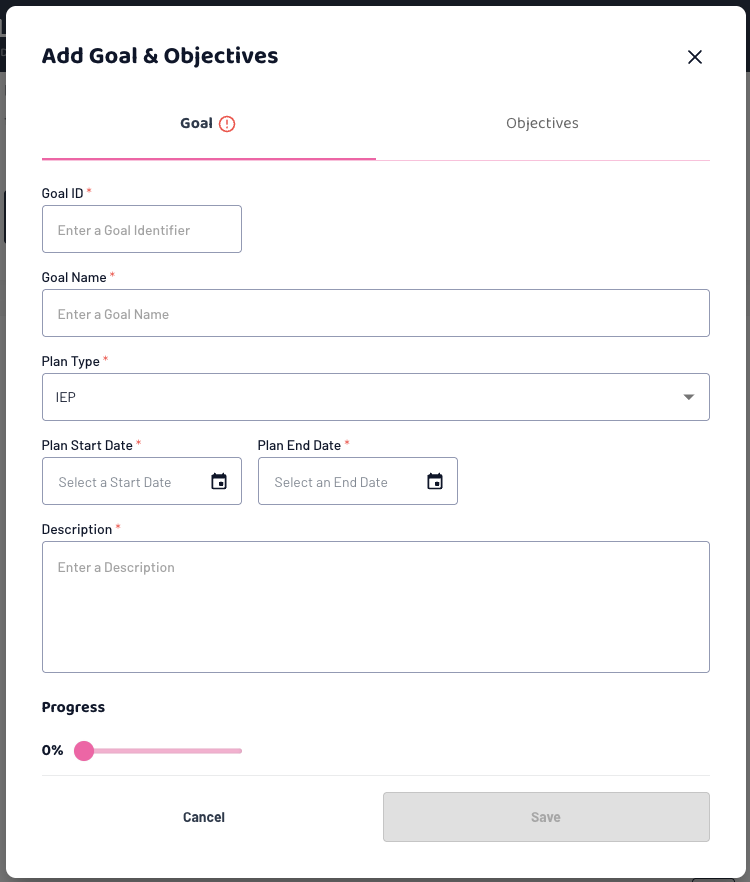 - Enter Objectives – Click on the Objectives tab of the goals pop up.