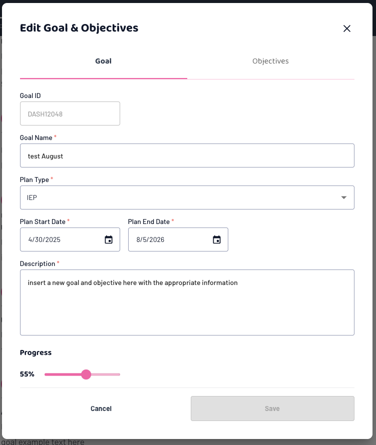 - Click on the pencil icon located in the top right corner of the goal. This will open the goal and objectives.